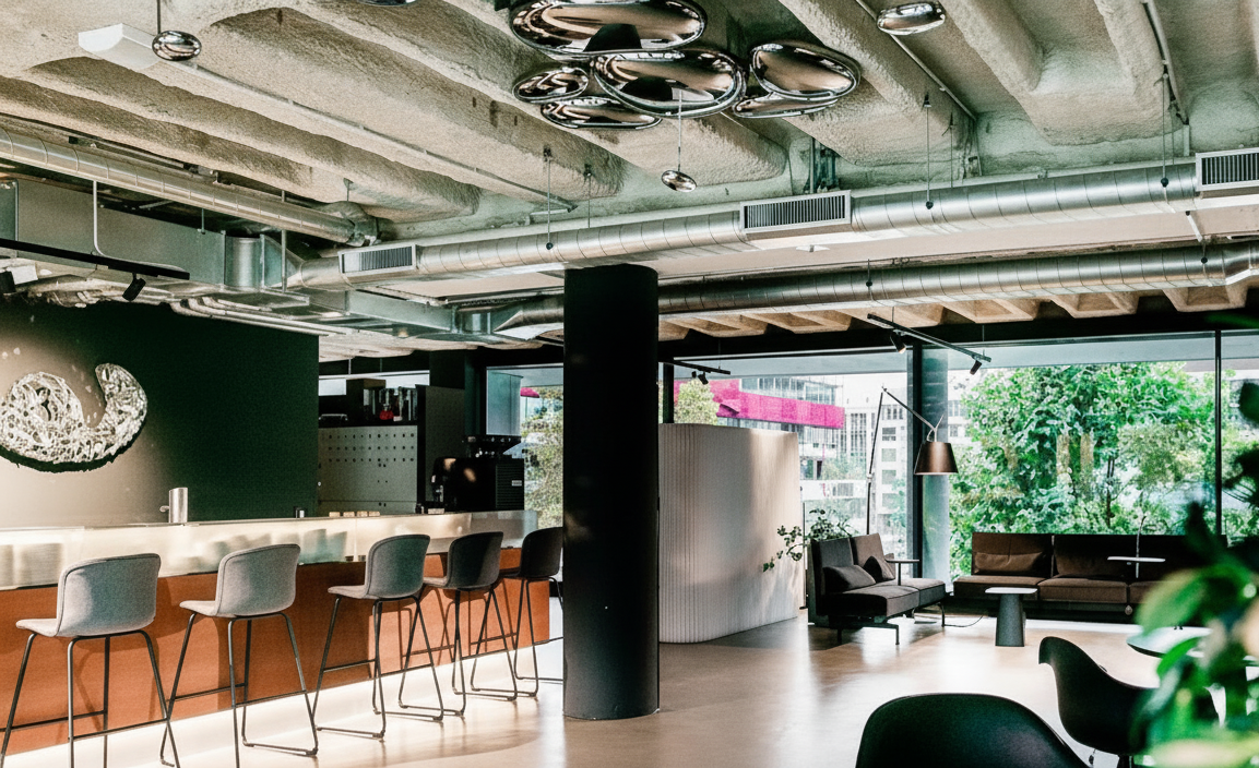 In 2020, the office space at Bikini Berlin was transformed into a dynamic coworking environment that fosters creativity, collaboration and flexibility. The redesign focused on adapting the existing office layout to accommodate multiple work modes, from focused individual workstations to collaborative meeting areas and informal lounges.